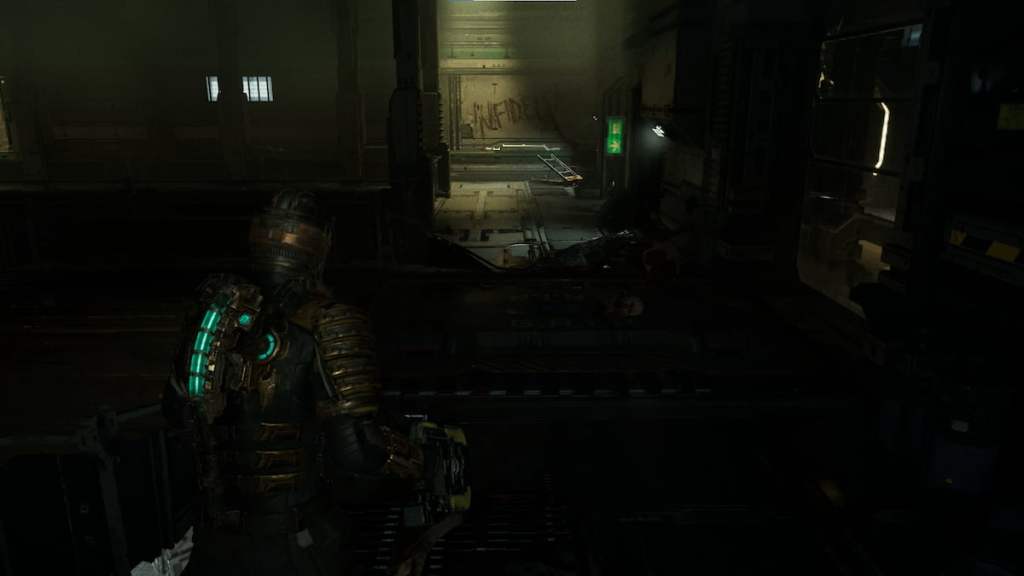 When you reach the other side, turn to the right, and proceed down the hallway to a Zero Gravity area. You don’t want to linger in this location for too long because you have limited oxygen. After reaching the next door and it shuts behind you, the oxygen counter should disappear. The next area will have a massive gap between you and the next room, and you will need to activate Isaac’s RIG flying.