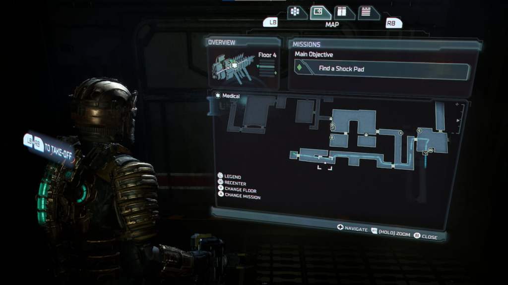 When you reach the second floor, proceed through the Sanitation Shower room, and the next area will have a Circuit Breaker you can use. You’ll want to switch power to the door, and the Shock Pads will be on top of the body on the medical table.