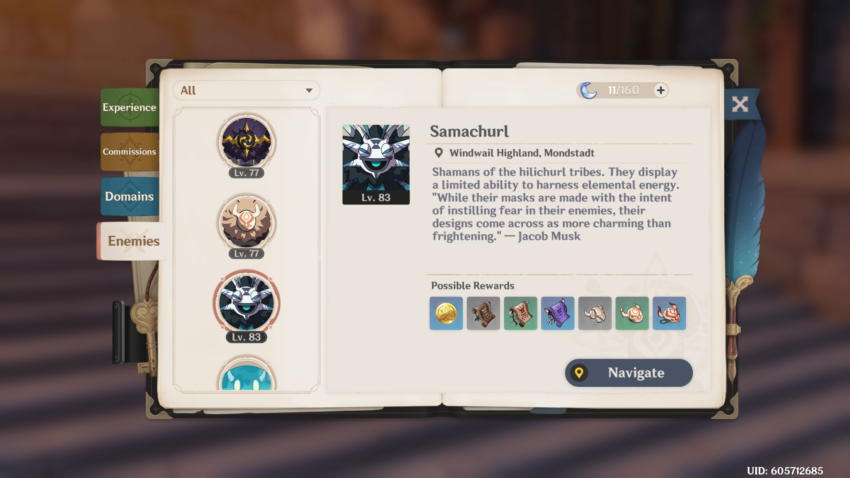 Divining Scrolls can be farmed from Samachurls in Genshin Impact. You can visit your Monster Guide on the top-right and find Samachurls in the Monster List, then hit the “Navigate” button. The game will lead you to locations where you can find and fight Samachurls.