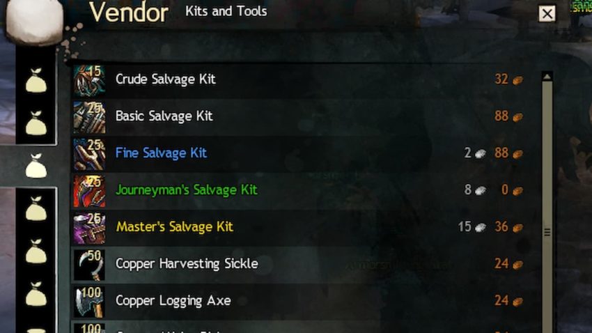 Salvaging is based on the different types of Salvage Kits you can get, and the better the quality of the kit, the better your chance for obtaining rare crafting materials. There are several types, but the main ones are: