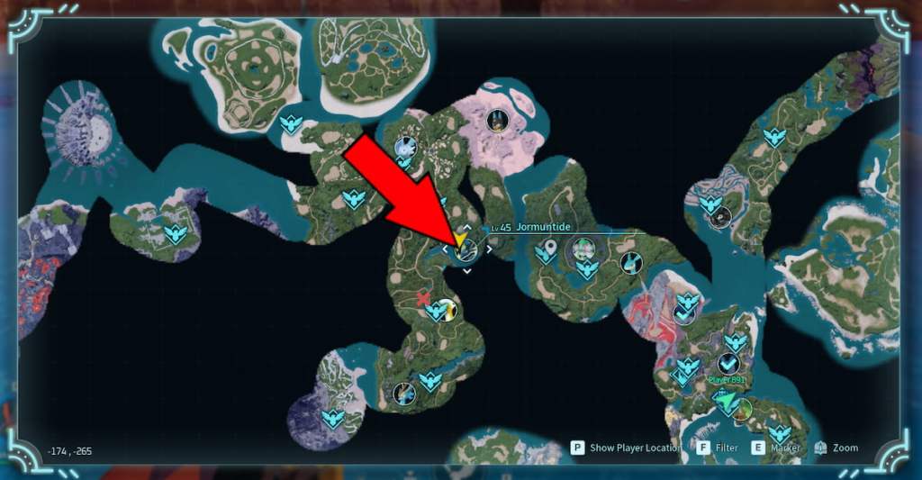 The standard Jormuntide is a Water Element Pal, meaning you’ll need to wade through the vast ocean of Palworld to track it down. One of the easier locations to find it is not far from the starting point, by making your way to the northwest of the starting area, close to the Investigator’s Fork fast travel point.