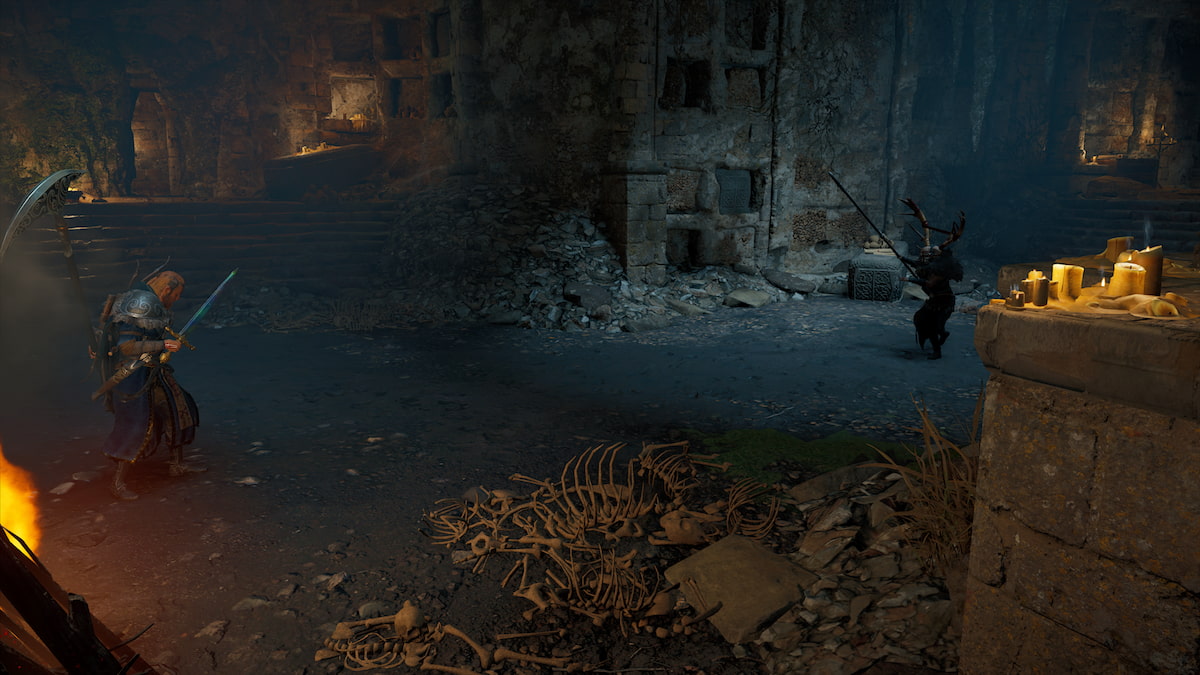 Instead, the spear will be in the room with the final chest, and you’ll have to make your way to the right, where there is a small gap Eivor can slide through. Then, you’ll enter a tomb where the champion will be waiting for you. They’ll be using the spear against you, which can catch fire and ignite during combat. We highly recommend raiding farms and homesteads before making it to Glennacally Fortress to ensure you have plenty of rations on you for the final fight.