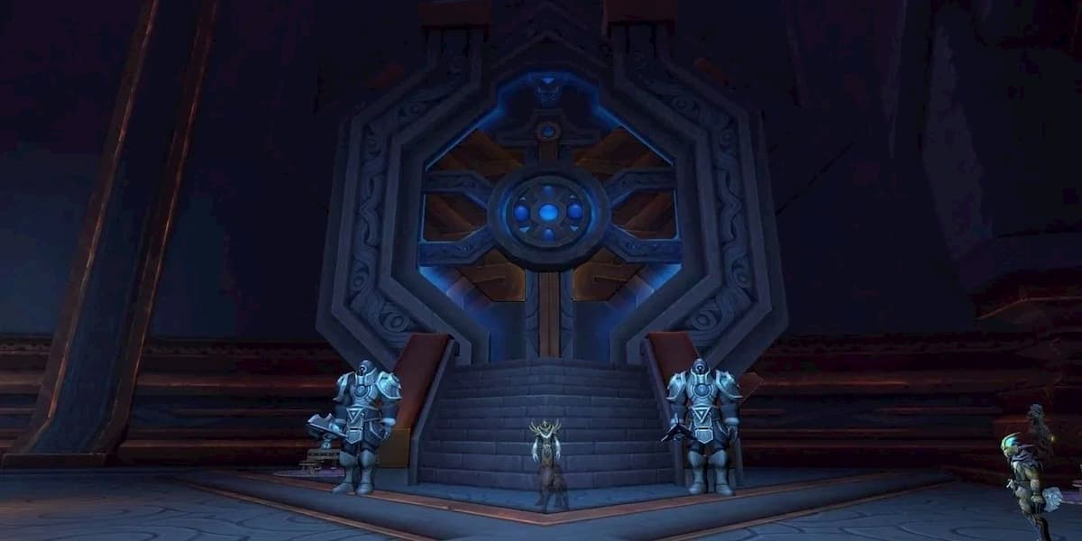 The Great Vault is located in the Hall of Holding inside the hub city of Oribos. Head to the northeast area, inside the Ring of Fates subsection. You’ll find the vault situated behind the bank on the bottom floor, flanked by two guards holding spears that serve as a warning to any potential intruders.
