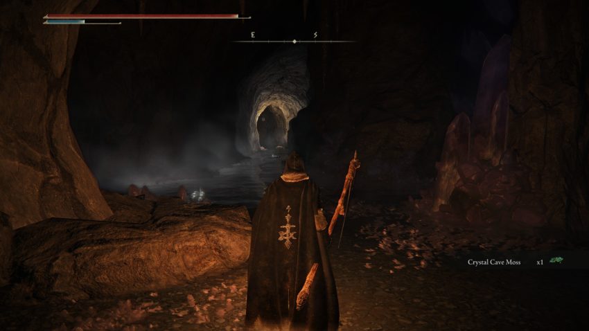 Unlock the door and head down into the Academy Crystal Cave. The place is filled with Academy Sorcerer enemies who’ll all spam Glintstone Pebble at you. Kill or avoid them until you reach the far side of the cave, where you’ll find a well-lit opening in the cave wall to your right.