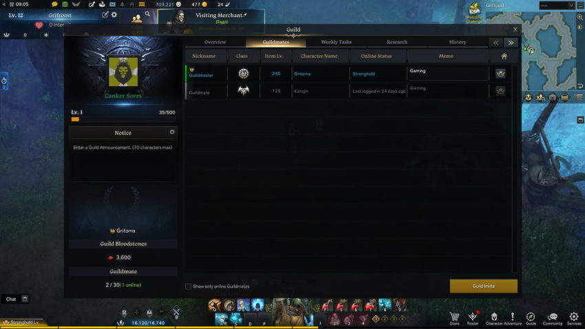 Lost Ark features a relatively well-involved player guild system, allowing individuals to gather for dungeon-crawling and share their stronghold resources. Should a player join a public and highly active guild, they will be put in connection with up to 30 other guild members.