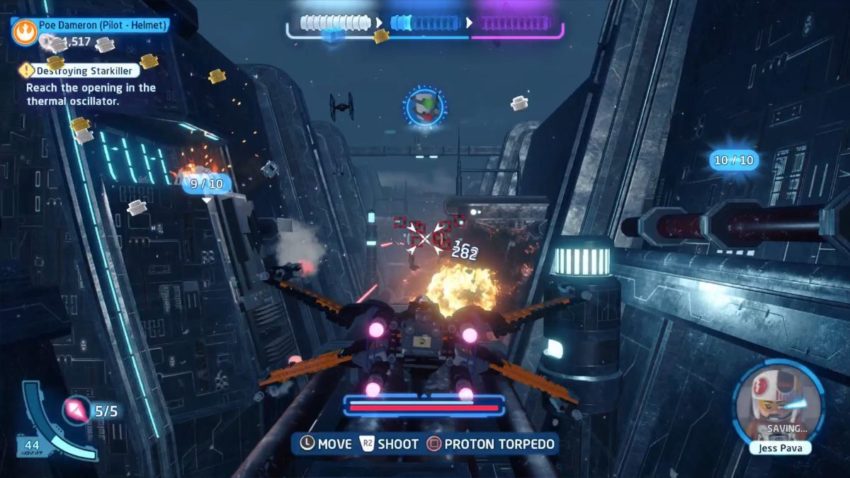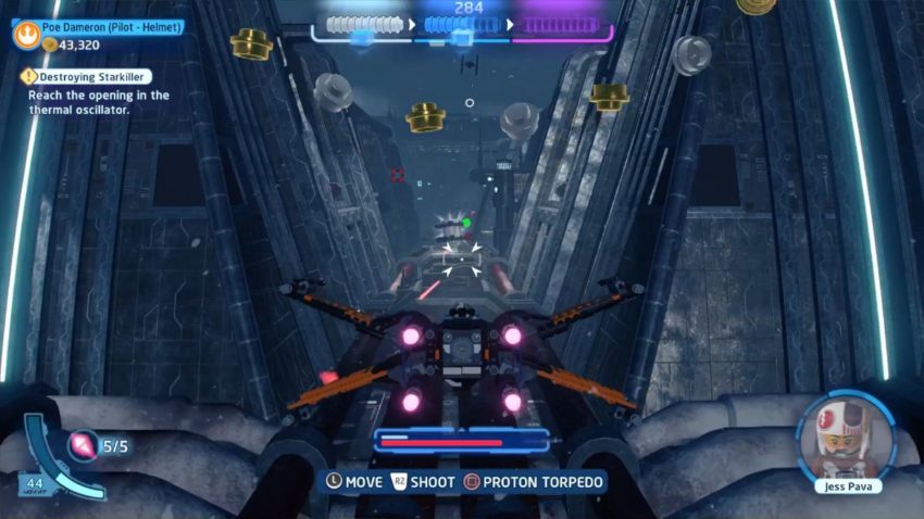 The first Minikit is obtainable after you’ve weakened the Starkiller Base’s defenses, and you’re flying through a trench. You need to shoot 10 of the turrets on the sides of the trench to unlock the Minikit.
