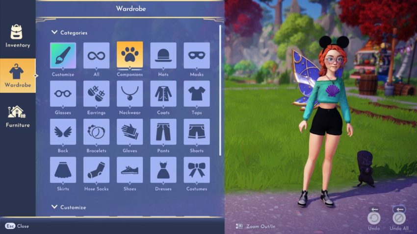 Once in the inventory menu, select the wardrobe option. In this menu, you will see an option that says Companions with a pawprint symbol above it. Select this option and it will bring up a new screen that shows you all of the animal companions you can equip. Choose whichever one you want and back out of the menu to save your selection.