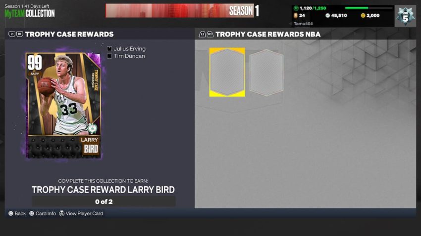 As mentioned above, getting Larry Bird is no easy task. 2K has added a new system to your collection called the Trophy Case. Each team in the NBA — there are 30 in total — has 15 different cards you need to earn by doing agendas, competing in different modes, locking in collections, or randomly earning them in packs. If you need some help understanding where to get all of the different cards, you can check out our guide on the topic.