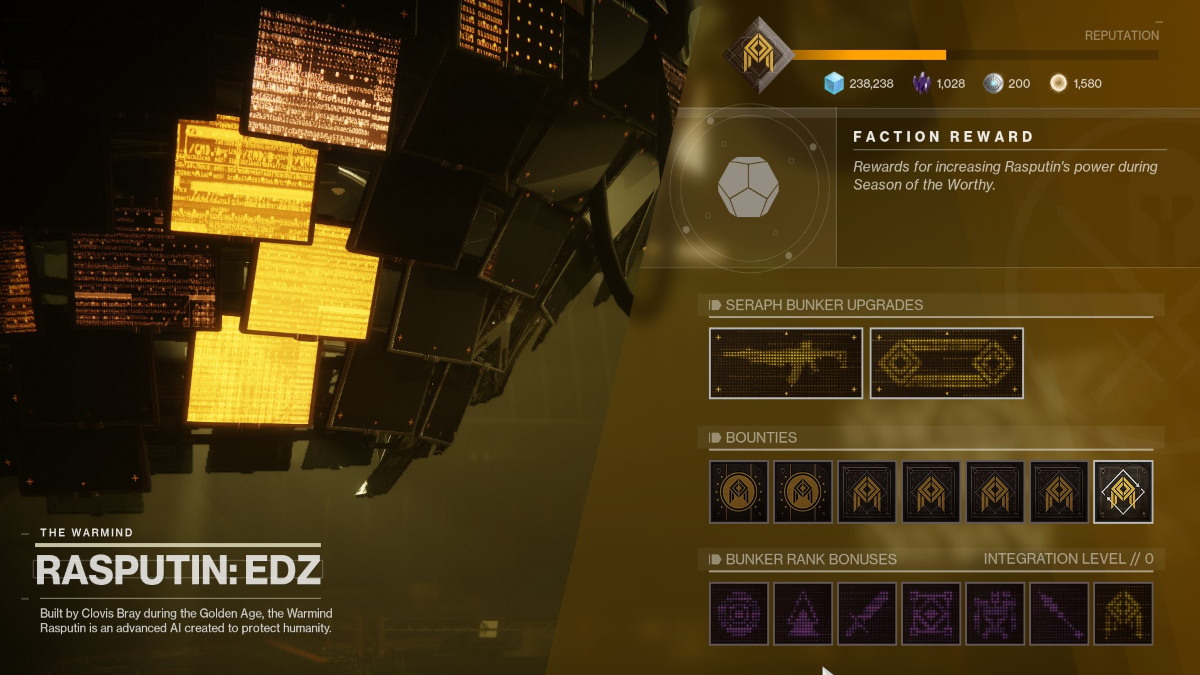 A useful collectible you want to locate during the Season of the Worthy in Destiny 2 is encrypted warmind bits. These are different than traditional warmind bits. Rather than using them to upgrade the Seraph Warsat Network, you use them to open up special Rasputin loot caches you can find following the successful completion of the Seraph Tower public event and Legendary Lost sectors.