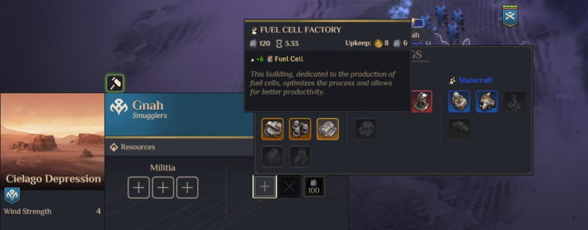 It comes down to constructing a Fuel Cell Factory. You’ll be able to make these when you take over a village and control it. You can do this by sending your military to a neutral or enemy location, claiming victory in the battle, and then choosing the Take Control option when in close proximity to the village. Once you have control over it, you can choose to place a Fuel Cell Factory down to increase the number of Fuel Cells your faction can use.