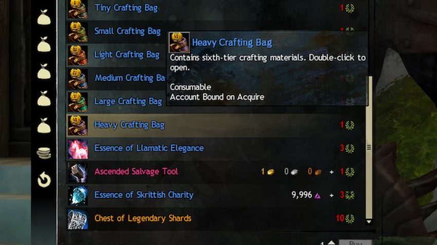 All of the Gift of Recipes can be purchased from Miyani in Lion’s arch for 10 Gold. You’ll have to combine all of these materials in the Mystic Forge to obtain your Legendary Sigil. The Tier 6 Materials that are needed for the crafting can be farmed on different maps, or you can purchase Heavy Crafting Bags from a Laurel Merchant.
