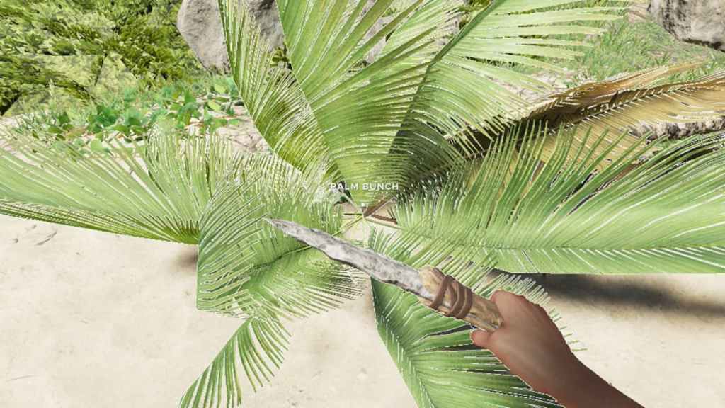 To get Palm Fronds on your island in Stranded Deep, you need to cut down a Palm Tree with a Refined Knife or better tool and then hack away at the Palm Bunch at the top of the tree until the Palm Fronds spread out on the ground. You can then pick up each Frond and have them in your inventory in stacks of four. When going to cut down the tree, be sure that there isn’t a rock wall or something preventing you from getting it on the other side. The tree will always fall straight down in front of where you are looking and can sometimes fall into walls, preventing you from getting the resources from them.