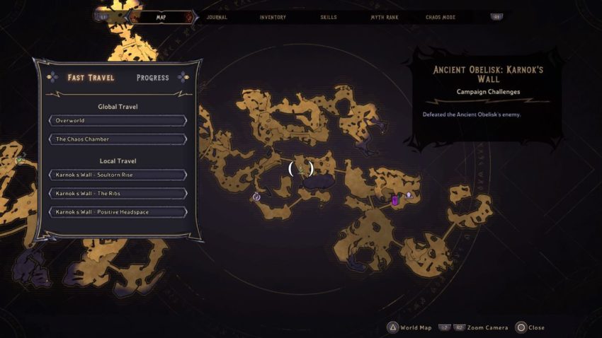 To farm the Ancient Deity, you will first need to progress far enough into the campaign to reach Karnok’s Wall. This area comes after you’ve completed the Drowned Abyss and beaten Dry’L. Once you enter Karnok’s Wall, follow the campaign mission until cross your first gap using a floating stone. Turn to the right and follow the path to a bridge. On the other side of the bridge, you will find the Ancient Obelisk of the area. You can farm the miniboss, Shara, here. She has an increased chance to drop the legendary ward. Remember, you will want to raise your Loot Luck before farming for this item to increase your chances of getting it.