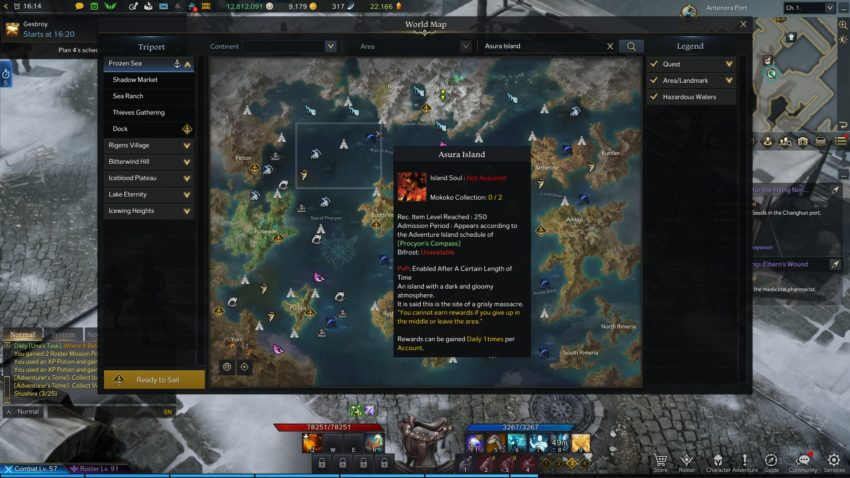 Note: Asura Island is an adventure island, meaning it is only available at the top of the hour on certain days. Diligently check your in-game calendar to see when Asura Island will be available for you to enter. If Asura Island is not slated to appear, you will not be able to enter the island.