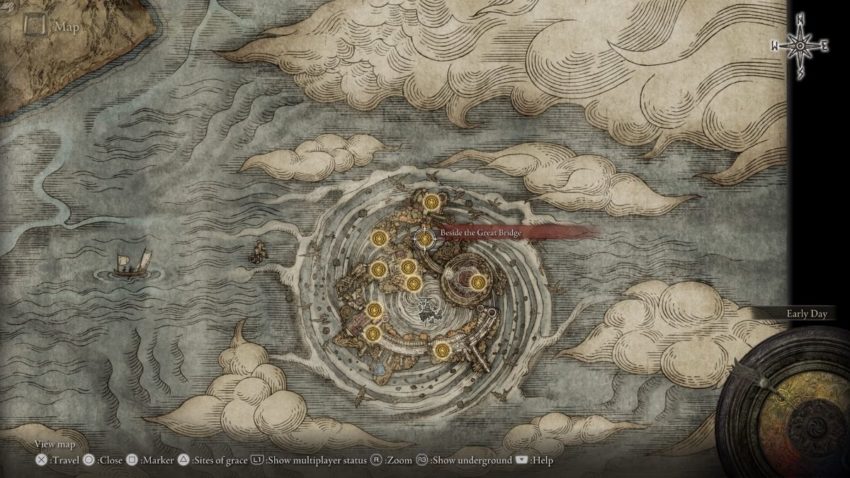 To obtain this weapon, you will first need to reach the Crumbling Farum Azula. You are automatically sent there after you defeat the Fire Giant and receive the cutscene at the Forge of the Giants. After you awake in the area, make your way to the Beside the Great Bridge Site of Grace. This is the Site of Grace that is near the boss arena with the calvary in front of it.