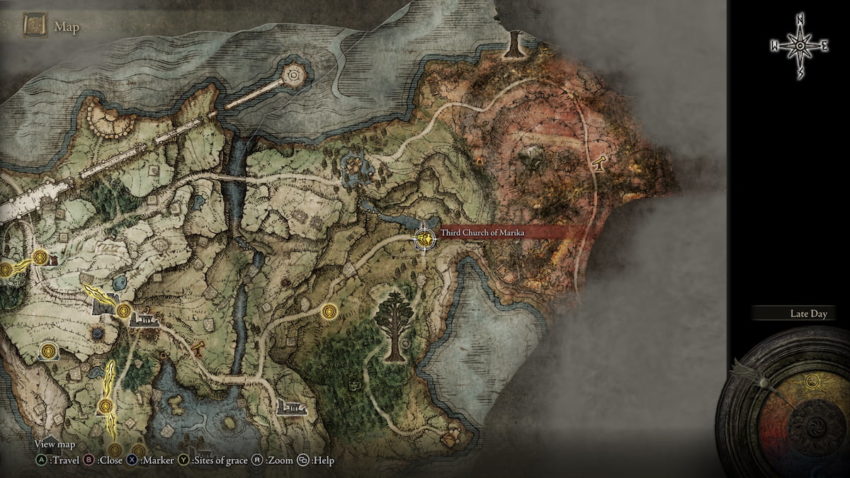 You will need to head to the east of the original starting location in Limgrave. We recommend starting at the Dragon-Burnt Ruins heading east until reaching the Waypoint Ruins. From there, follow the path north and to the northeast, and when you reach the end of the path, you’ll arrive at the Third Church of Marika.