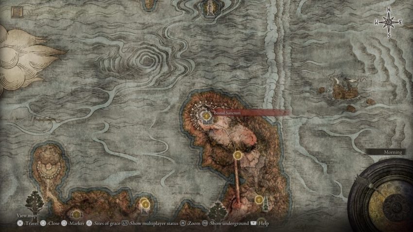 Getting this weapon can be a bit tricky but you can obtain it pretty early on in your game from the Caelid region. While it is possible to ride there are on your horse, you can easily teleport there if you follow D’s questline. If you choose to ride to where the weapon is, you will need to go to the far northeastern corner of Caelid. This is where you can find the Bestial Sanctum. If you choose to teleport there, you will need to do the following steps for D’s quest.