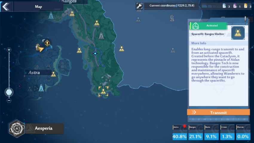 Once you reach the Banges region, head south to the bottom of the region. On top of a large metal structure, you will find the Banges Shelter Spacerift. Go ahead and link it so you can return here later (trust us, you will need to). Head north from the Spacerift into Banges Shelter.