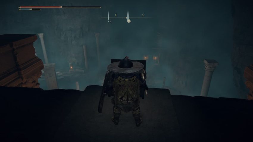 At this point, take the small passage behind the giant ants, where you’ll see a T-posed enemy. It’s easy enough to land a backstab on this enemy, but be aware of a second enemy waiting around the corner to the right. From here, turn right and walk along the narrow ledge, jumping down a couple of times, until you reach the top of the ruins. At this point, turn left and head to the small chest shown above, where you’ll find the Wing of Astel.
