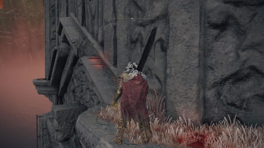 Next, head left. Summon your horse to safely traverse the broken ledges on the side of the tower.