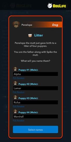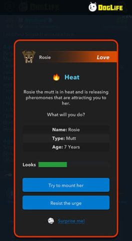 While you age up and continue through your dog’s life, pay attention to the messages that pop up when you decide to age up. If a dog is in heat or another is interested in you, you will see messages that give you opportunities to get close with another dog. There are also chances where you can have multiple males, which will end in the game telling you two dogs fathered the puppies.