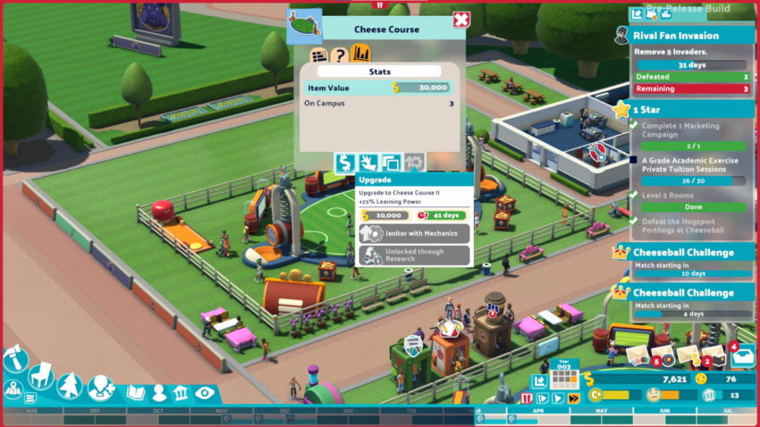You can do this for each room, such as enhancing the Analogue Computer in the Computer Lab or the Cheese Course in the Chesseball Field. Each classroom on your campus will have a central area your students use to learn from your teachers, and improving these dramatically enhances a student’s learning throughout the year, but they are costly.