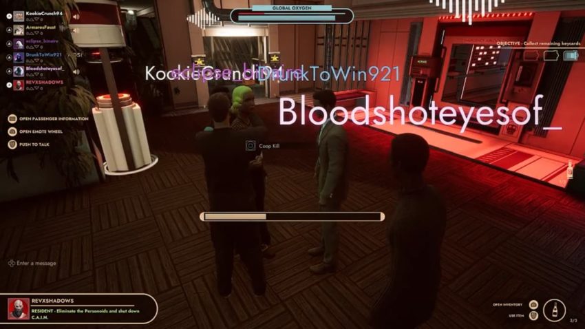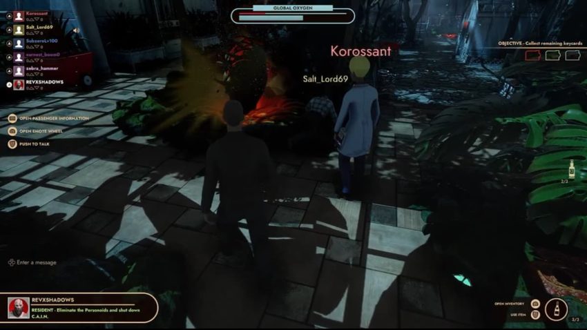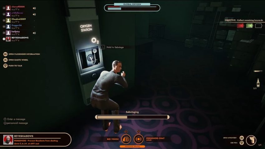 There are a few things that Personoids can sabotage throughout the second level in each round. The most common sabotage targets are the Oxygen Stations littered throughout the area. Every time a Personoid sabotages these, the Global Oxygen bar will fall significantly. If the Oxygen reaches zero, the game will end with all Residents dying. Another common sabotage is the Gas Leak. If a Personoid causes this, the Residents have to repair two gas leak locations before the timer runs out and everyone dies.
