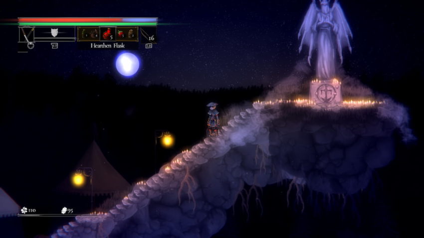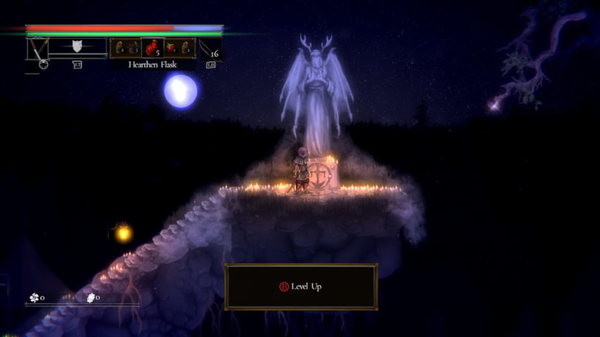 When you have enough salt, you need to return to Pardoner’s Vale and seek out the shrine at the top. You can find it by searching to the west of Champion Hera and then up the stairs. When you reach the top of the stairs, head to the right, and you’ll find the shrine where you can level up. You’ll want to choose the first option when you arrive and exchange salt for the chance to increase your character’s stats.