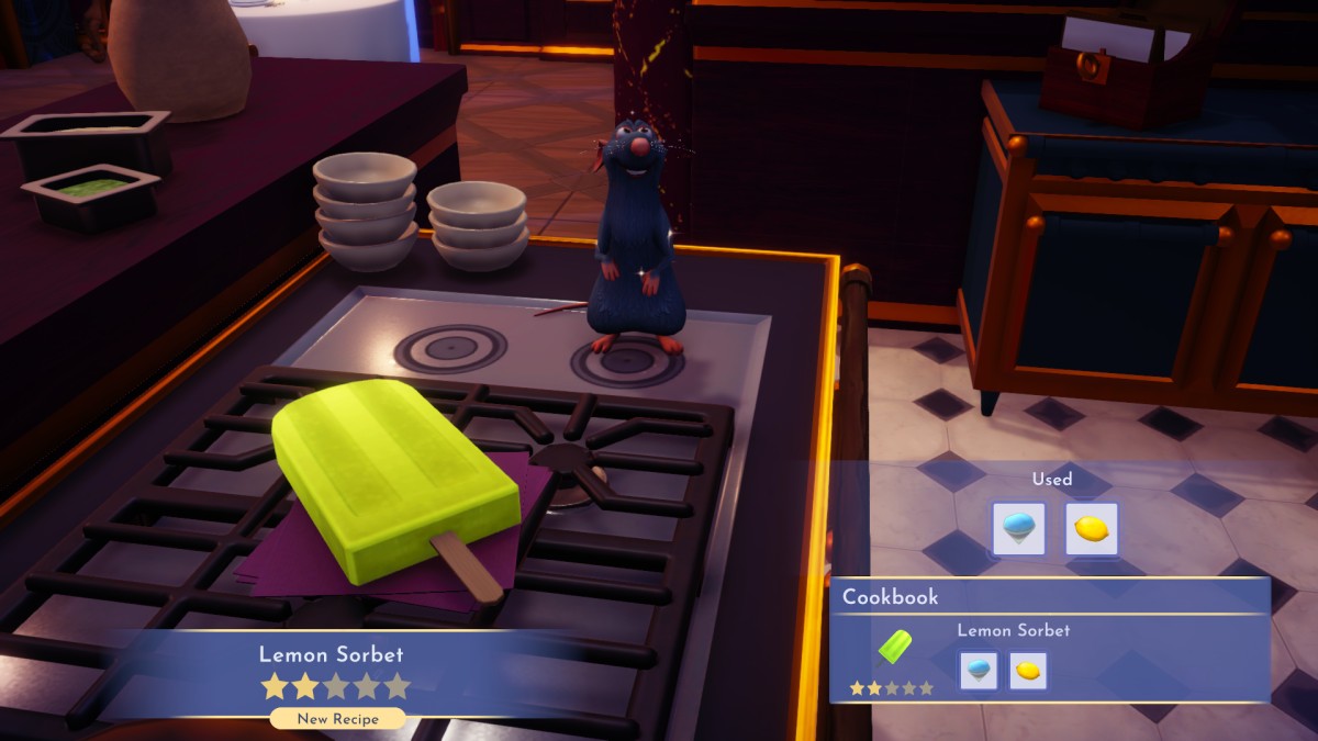 Each dish in Disney Dreamlight Valley is given a corresponding star rating, which reflects the number of ingredients used for the recipe. Since the Lemon Sorbet is a 2-star dessert, it is made up of the following two ingredients: