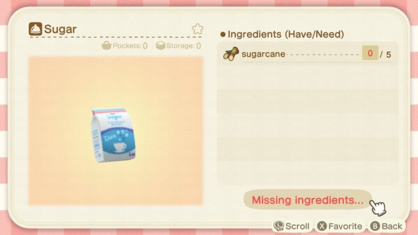 Sugar is made by combining five sugarcane together at a stove or other furniture item used for cooking. Before you can start making sugar, you need to purchase a few items. Head to the town hall and access the Nook Terminal there. Use it to purchase the DIY Recipes+ item. Afterward, head to Nook’s Cranny to purchase the Basic Cooking Recipes item from the cabinet.