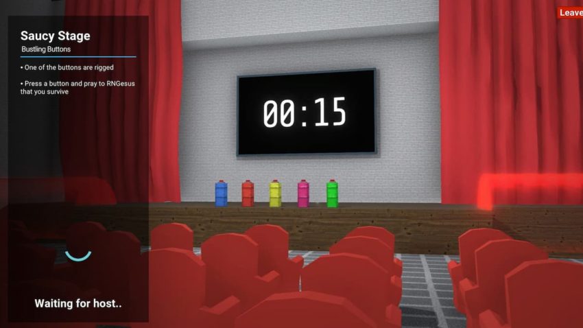 There’s not much strategy to this game. If it’s your turn, you walk up to the stage, press a button, and hope you don’t blow up. There’s no way to tell which button is rigged nor alter the order you’re going in. If you’re going first or following up someone who got blown up by the rigged button, count yourself lucky; you have the most options, so statistically, you have the highest chance of survival. If you’re going later, all you can do is hope for the best.
