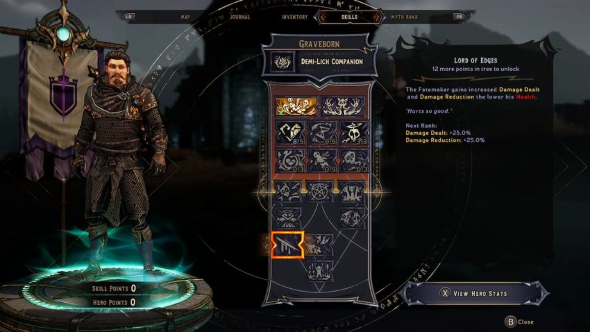 The key to using this style is the class skill pictured above. Lord of Edges increases the damage and how much defense you have based on how low your health is. With some powerful spells and weapons, this build is devastating in late-game situations. Activate the skill from range, and clear as many enemies with long-range weapons. If you’re fighting a hard boss, save it in case you are near death. When the boss kills you, it will instead bring you back with your health restored.
