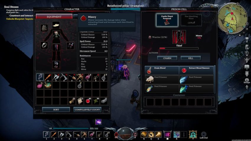 Once you get to the mid-game sections of V Rising, you might get tired of running around looking for good, high-quality blood. Fortunately, you can get all the buffs you need at a moment’s notice from the safety of your own castle. All you need are some prison cells and a few charmed prisoners. The only problem at this point is keeping your captives fed and happy, so you don’t accidentally kill them with your late-night snacking.