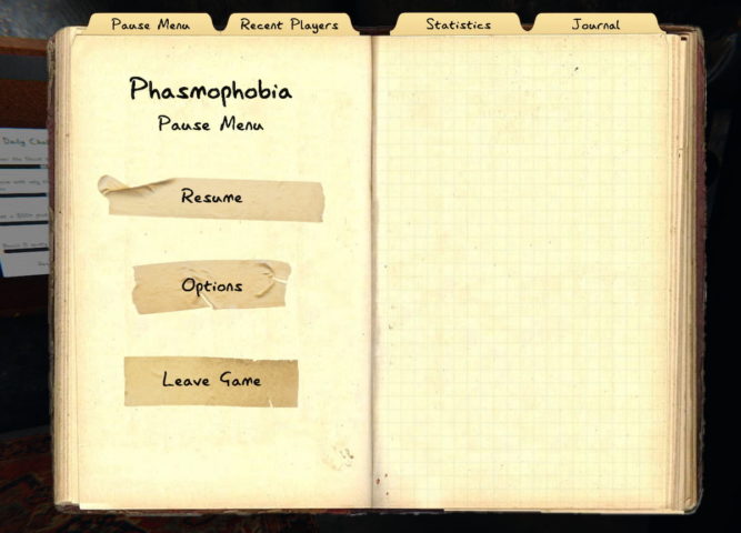When searching your journal, go to the Recent Players tab and click the report icon. It will be next to a player’s name, and you can provide additional information about why you report them. It is important to be specific and share with the Phasmophobia team why you are doing this. You can find the Recent Players tab in the Pause Menu of your journal.