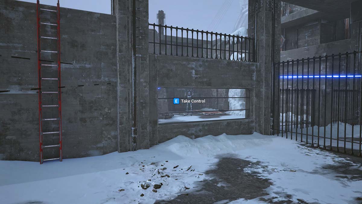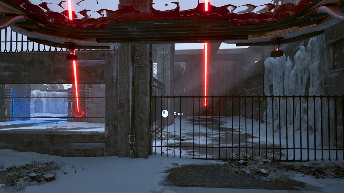 If not already in position, take Control of the body holding the platform with the Connector and have them walk into a position where the Receiver fills and disables the Energy Gate. Take Control of the body that isn’t holding anything and walk them through past this first Energy Gate. Turn around, look through the bars, and take Control of the body holding the platform in the main area.