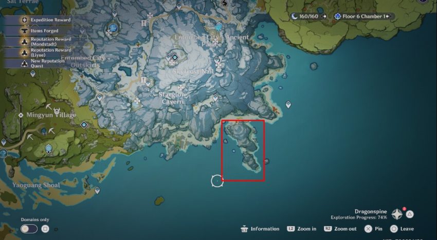 To begin this quest, you actually need to find an item in Dragonspine, all the way on the other side of the world. Players will need to make their way to the peninsula at the southeast of Dragonspine that juts out into the sea.