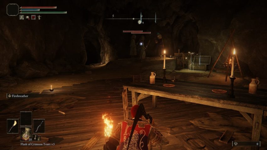 Follow the pathway, and you’ll drop down and enter a room with three magic users wearing masks. Inside the chest will be the Crystalian ashes. You do not have to defeat these enemies, but it certainly helps access the chest without being bothered.