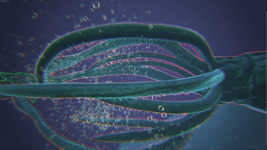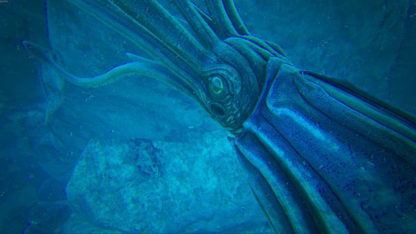 Once you have your supplies, you’ll need to swim up to your targeted Tusoteuthis and allow it to grapple your Carbo. While it is mauling your turtle, and you’ve been dismounted, swim up to its mouth, which will be exposed while it’s grappling the Carbo. When you reach the mouth, you’ll get the prompt to feed it.