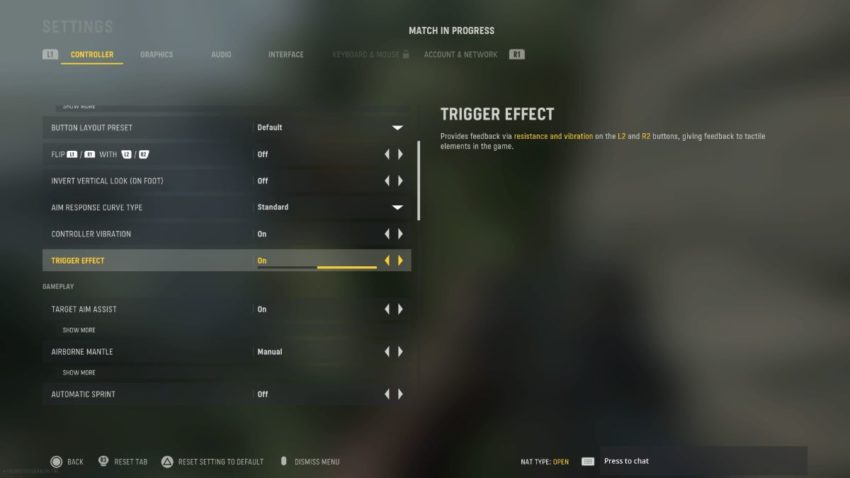 Thankfully, there’s a way to turn it off. Press Options (which should be called the start button but we digress) and it will pop open the Settings menu. On the first tab, you’ll find the “Controller” options. On the very bottom of the “Basic Controls” section, you’ll see a toggle for Trigger Effect. Turn it off to remove the resistance and vibration of the L2 and R2 buttons. While you’re there, you can also turn off all of the game’s vibration options just above. Now, you’re ready to be a competitive Call of Duty player. Best of luck to you on the battlefield.