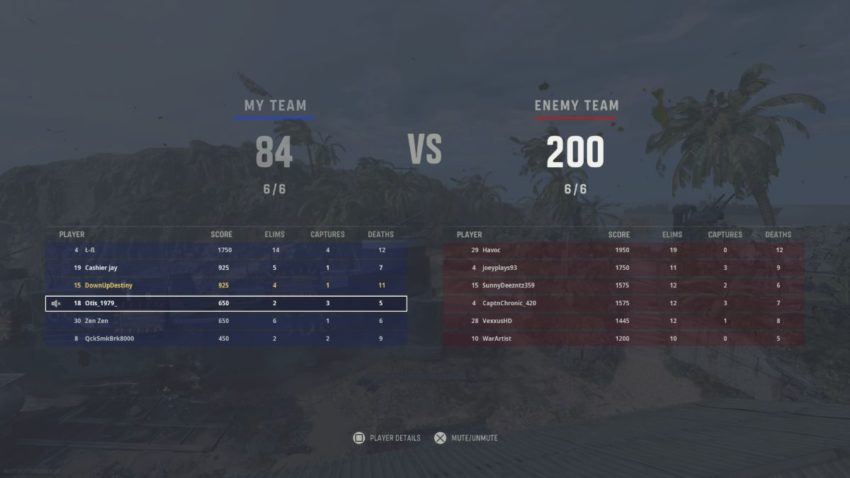 If you still want your voice chat to be left on, and you want to specifically mute people in-game, you can do that too. Simply go to the scoreboard menu with the touch pad (or your equivalent button on Xbox and PC) and then scroll down to the player you want to silence. Press the cross button to mute them. It’s that easy. Now, you can battle it out on a map like Gavutu to the best of your ability.