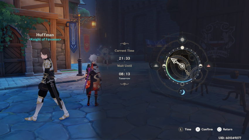 Once you are at the correct time of day, head to the city gate and meet with Fischl. After all the characters meet, you must run outside the city gates and cross the bridge to the next objective pictured below.