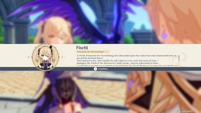Once you reach Mondstadt, head to the Adventurers Guild and speak with Katheryne. She will pass along a message from Fischl requesting your presence in the Mondstadt plaza.