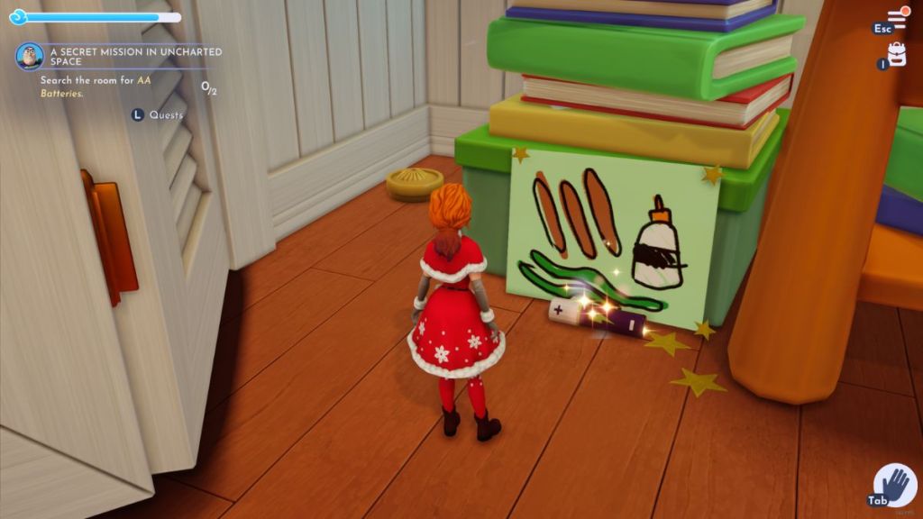Once the door is unlocked, head into the Toy Story Realm and talk to Buzz Lightyear who will be standing on a platform near the foot of the bed. Buzz needs some new batteries because his own are starting to short out. Your first task is to collect two AA Batteries from around the room. These can be found in the following areas: