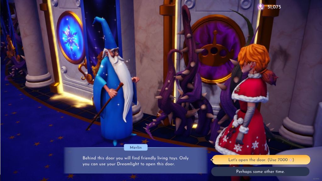 Woody and Buzz reside in the Toy Story Realm that was added to the game with the Missions in Uncharted Space update. Like the other realms, you can find this one inside Dream Castle. The door leading to the Toy Story Realm is next to the door to the Frozen Realm. Before you can access this realm, you will need to clear the Night Thorns blocking the door. This will cost you 7,000 Dreamlight.