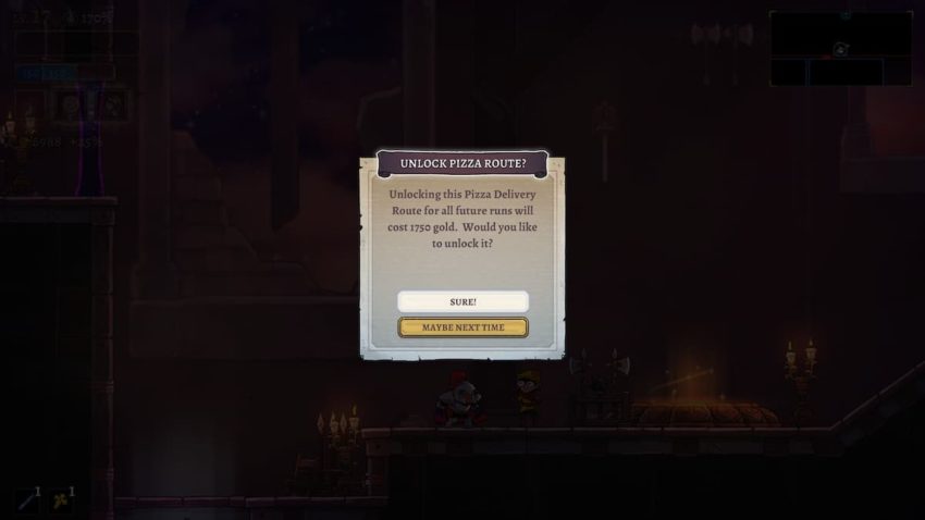 Once she leaves, you need to head toward any teleportation platform at the start of a zone. The closest to this location is The Sun Tower, which is to the room north of the pizza shop. At this point, you can’t really do anything there, but it might be worth unlocking immediately so you can easily come back. Either way, when you find a new teleporter, the pizza delivery person will be waiting for you. Talk to her and she will permanently unlock the teleporter for a fee of 1,750 gold. Considering how much time it takes to get back to those teleporters, we consider this well worth the asking price.