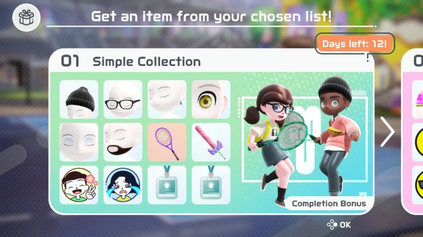The option to get a new item comes instantly after the match. It will give you two collections to pick between. You should stick to one set since if you collect all the items, you’ll get a completion bonus seen on the right-hand side of the card. For example, the Simple Collection will give you a blue skirt and white shirt for women and a pink fleece with blue jeans for men. Take a glance at both options and pick the right one for you.