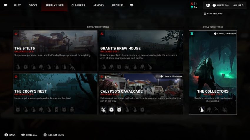 Unlike normal Supply Lines, Skull Totem selections regularly refresh throughout the day, but other than that, they act the same way. There are cosmetics for your Cleaners and weapons, sprays, and the cards you are looking for. The ones appearing here are exclusive to this track, so if you see one you want, grab it before it goes into rotation again.