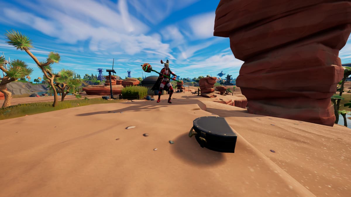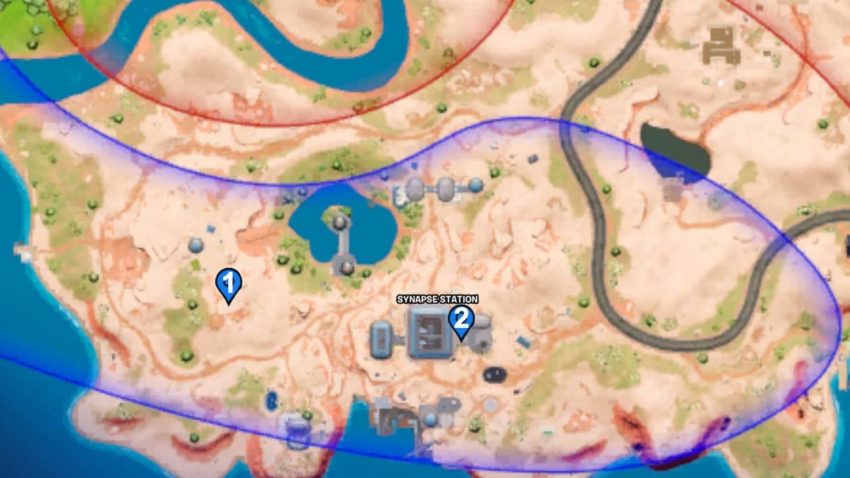 Before heading into Synapse Station, The Imagined NPC will first require you to grab the disguise inside of a black briefcase outside the POI. As marked below, the briefcase is to the left of the station’s pond and sits on the center of a large boulder. You should then pick this up to find you’ve instantly become a mysterious female character that doesn’t attract the attention of nearby NPCs.