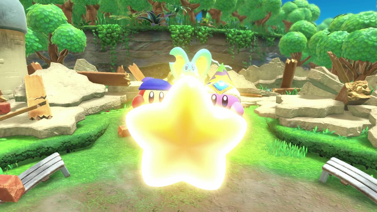 You bet he is. Playable as the second character, Bandana Waddle Dee brings his trademark spear combat to Kirby and the Forgotten Land, allowing players to multi-thrust and spear slam their way through the various enemies in the game. He doesn’t have the ability to absorb powers as Kirby does, but his spear combat more than makes up for it — and he retains similar speed and hover capabilities.