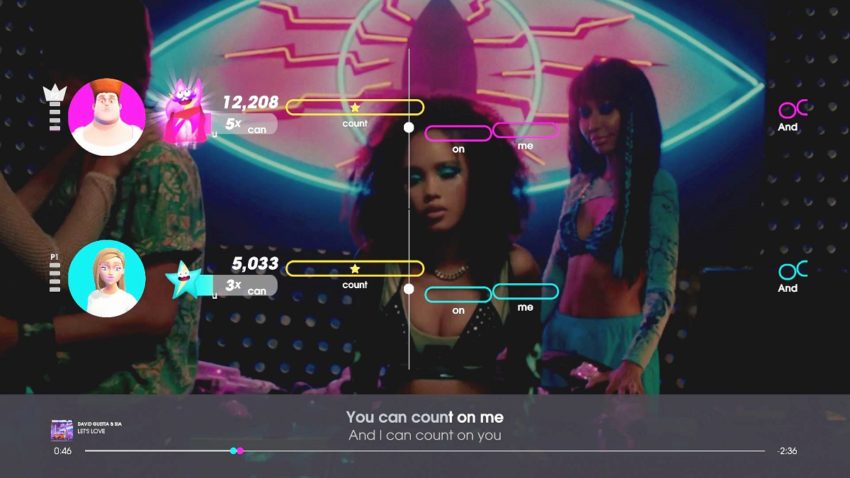Let’s Sing 2022 provides 30 songs from different eras and genres of music. You have the holiday classic “Last Christmas” by Wham and Amy Winehouse’s “Back To Black,” and Aladdin‘s “A Whole New World” among the mix. Modern hits like Billie Ellish’s “Everything I Wanted” and Bruno Mars’ “Leave the Door Open” are in the game as well. It’s an amalgamation of songs that don’t really click well together. With so much contrast, it’s unlikely you’ll know all the songs and will only be able to sing just a handful.